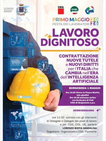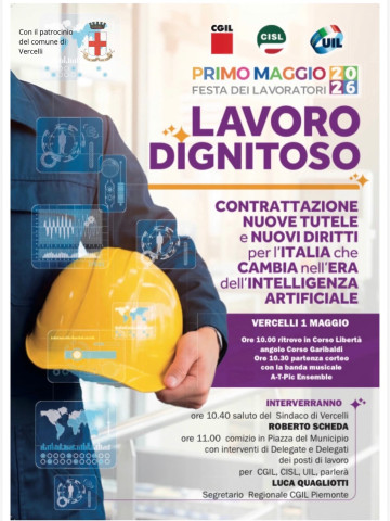 News 25 aprile 2026“Lavoro dignitoso. Contrattazione, nuove tutele e nuovi diritti per l’Italia che cambia nell’era dell’intelligenza artificiale” è il motto con cui CGIL, CISL e UIL scendono in piazza il venerdì 1 Maggio 2026 per celebrare la Festa dei Lavoratori.